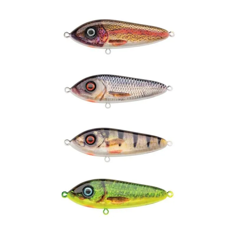 De Abu Garcia Svartzonker Mcjerk is een langzaam zinkende jerkbait. Hij is eenvoudig te vissen en heeft een wijd uitslaande actie. Als de bait Steady wordt binnengedraaid is het een echte “glider” met een mooie S-beweging . Aan de bovenzijde van de jerkbait is een witte stip aangebracht zodat de jerkbait makkelijk is te volgen is tijdens het binnen vissen. Verkrijgbaar in vangerijke zeer realistische kleuren.Â