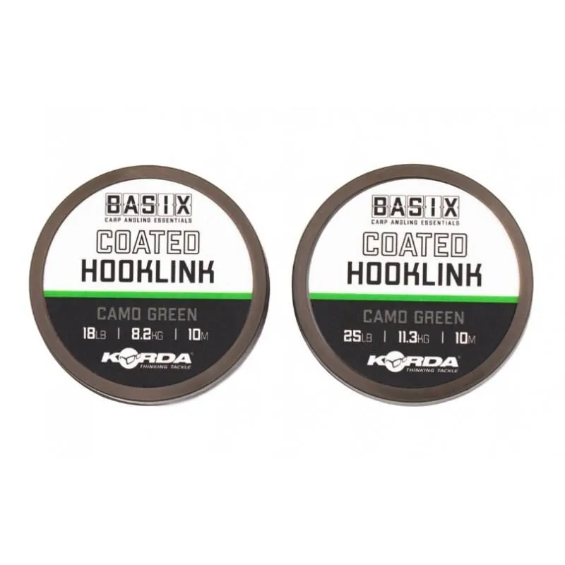 Korda Basix Coated Hooklink 10m, sterk en schuurbestendig onderlijn materiaal
