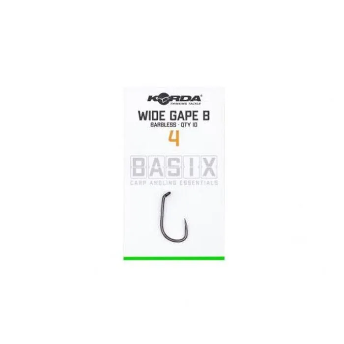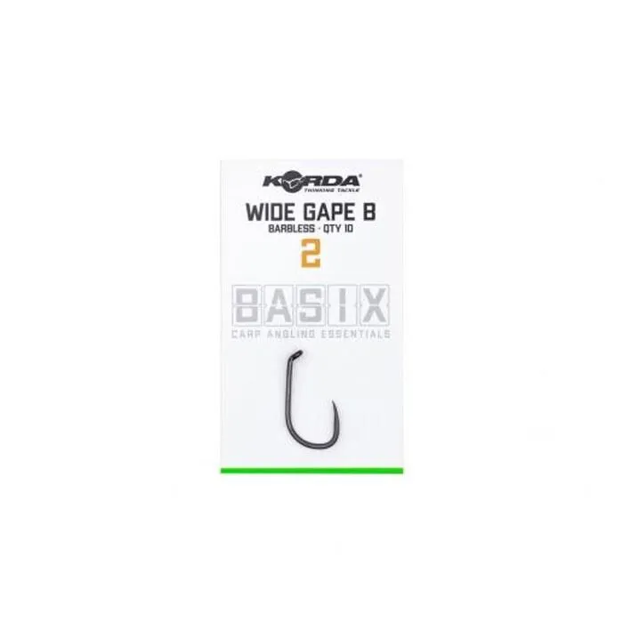 De Korda Basix Wide Gape haken zijn gemaakt op een allround doelgroep karpervissers. Deze kunnen perfect gebruikt worden voor een breed scala aan ready rigs zonder daar extra componenten aan hoeven toe te voegen. Of je nou met boilies, pop-ups of wafters vist, deze haken zijn voor iedere situatie geschikt. Door de agressieve in-turned oog draait de haak heel snel en grijpt meteen in de mond van de vis zonder dat er kickers of alligners gebruikt hoeven te worden. De haak wordt gemaakt met X Gauge wire. Dus is het overal te gebruiken.Â