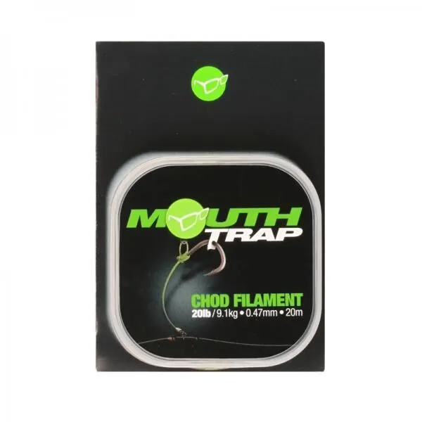Mouthtrap, welke beschikbaar is in breeksterktes van 15lb, 20lb en 25lb is voorzien van een natuurlijke “Carpy” kleur, welke eenmaal in het water vrijwel onzichtbaar wordt. Dit laatste is natuurlijk iets dat de hoogste prioriteit heeft binnen het Team Korda.