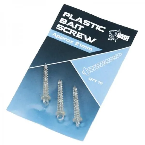 Bait Screws schroeven en houden boilies, pop-ups, noten en foan vast zodat je snel en zonder boilienaald van haakaas te wisselen. Taps toelopende schroef voor extra houvast. Gemaakt van hard plastic. Verkrijgbaar in 8mm en 21mm lengte. 10 stuks in een zakje.