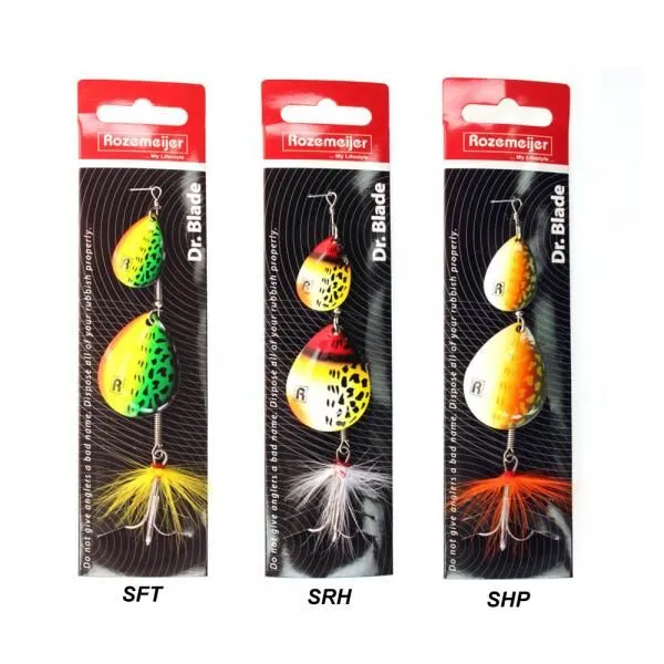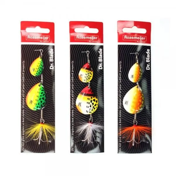 Spinners, je hebt ze met enkel blad maar soms zijn 2 bladen gewoon net even beter! In een troebele poldersloot of op een grote plas zorgt deze tandem voor veel vibratie zodat de snoek wordt getriggerd om te komen kijken. De Dr. Blade Tandem 3 & 5 heeft zich al ruimschoots bewezen, dit wordt een absolute topper! Te verkrijgen in 3 schitterende kleuren: Speckled Fire Tiger (SFT) / Speckled Red Head (SRH) / Speckled Hot Pike (SHP).