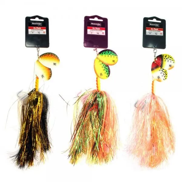 Deze Spinners van Rozemeijer zijn en blijven favoriet bij de (grotere) roofvissen. In de polder en stadswateren worden deze regelmatig ingezet maar op het grotere water blijven ze een beetje achter. Zonde, want juist daar kan een goede grotere spinner het verschil maken, en dat is precies wat Dr. Flash doet! Deze dubbele spinner zorgt voor veel vibratie, enorm veel flash en waterverplaatsing. Snoeken weten niet wat ze meemaken en zullen zich vol overgave storten op deze fantastische spinner!